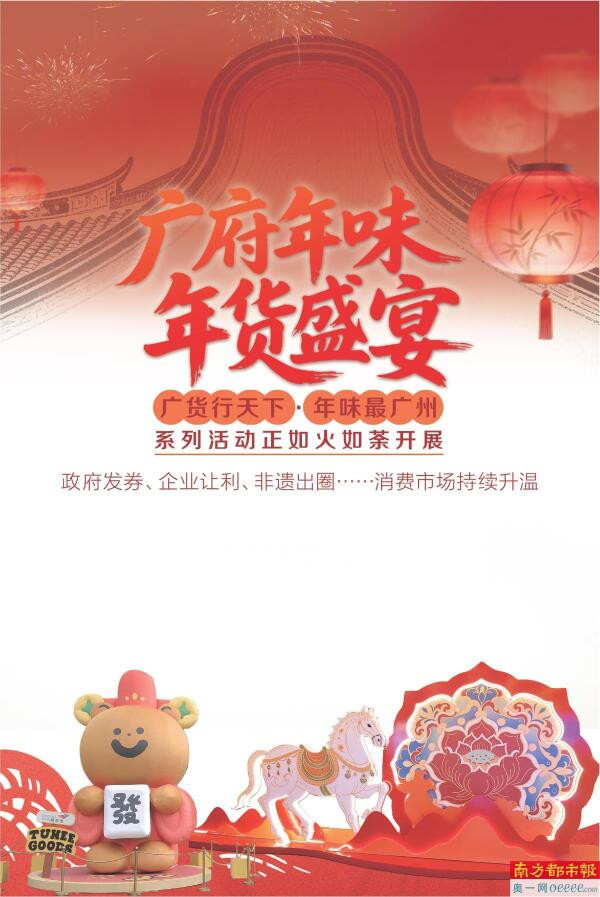 马年春节临近,羊城节前消费市场持续升温。据了解,“广货行天下·年味最广州”系列活动正如火如荼开展,广州市商务部门联合市直相关部门、各区,联动各行业协会和重点企业,提前谋划、双线发力,一手发动企业推出新春广货消费活动,丰富消费供给;一手抓实民生商品保供稳价工作,畅通供应渠道,全力保障全体市民和来穗游客度过一个消费畅旺、欢乐祥和的春节假期。