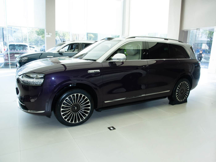 再来看车身侧面部分,车身尺寸5285×2026×1845mm,轴距 3125mm,全尺寸 SUV 顶级体量,短前悬、长轴距、宽体低趴姿态,空间欺诈率出色。侧面罗致双相接腰线 + 悬浮式车顶策划,腰线从前翼子板相接至尾灯,光影脉络丰富、姿态舒展;玄色宽体防刮轮眉 + 侧裙,兼顾实用性与硬派感。标配半掩盖式星光电动门把手,围聚自滚动出、缩短风阻、进步精粹感;21/22 英寸低风阻铸造轮毂,搭配 275/45 R22 高性能轮胎,兼顾舒心、握地与操控褂讪性;最小离地罅隙 200mm,城市通勤与轻度越野通过性拉满。