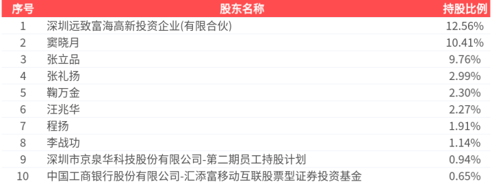 公司推动户数为5.72万户,前十大推动捏股数目为1.22亿股,占总股本比例为44.92%,前十大推动捏股情况如下: