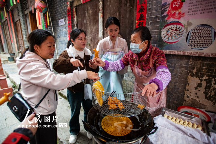 2026年2月5日,游客在广西靖西市新靖镇旧州街品尝当地特色小吃。近日,“靖西人家舌尖上的非遗体验之旅”入选全国非遗美食特色旅游线路,系广西唯一入选项目。该线路融合地方非遗美食与文化旅游,旨在以特色美食为载体,推广靖西独特文化。此次入选有助于进一步提升靖西文旅品牌影响力,推动地方旅游经济发展。赵京武摄(人民图片网)