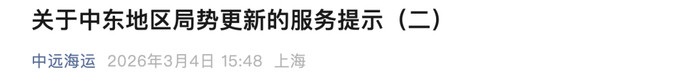中远海运:鉴于中东地区打破抓续升级,即日起暂停干系航路新订舱业务,还原时辰另行见知为止