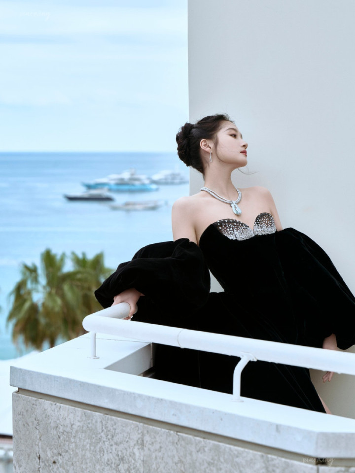 黑丝绒拖尾战胜太绝了!关晓彤肩颈线条优厚,亚博阳光下每一帧王人是壁纸
