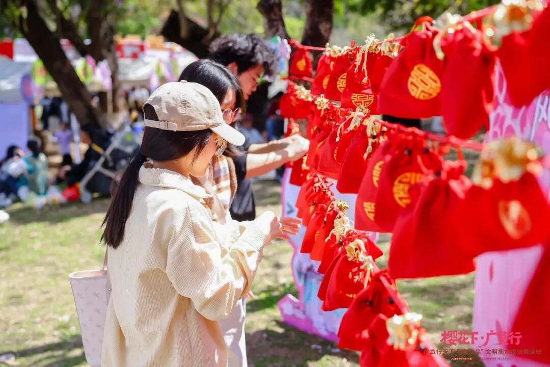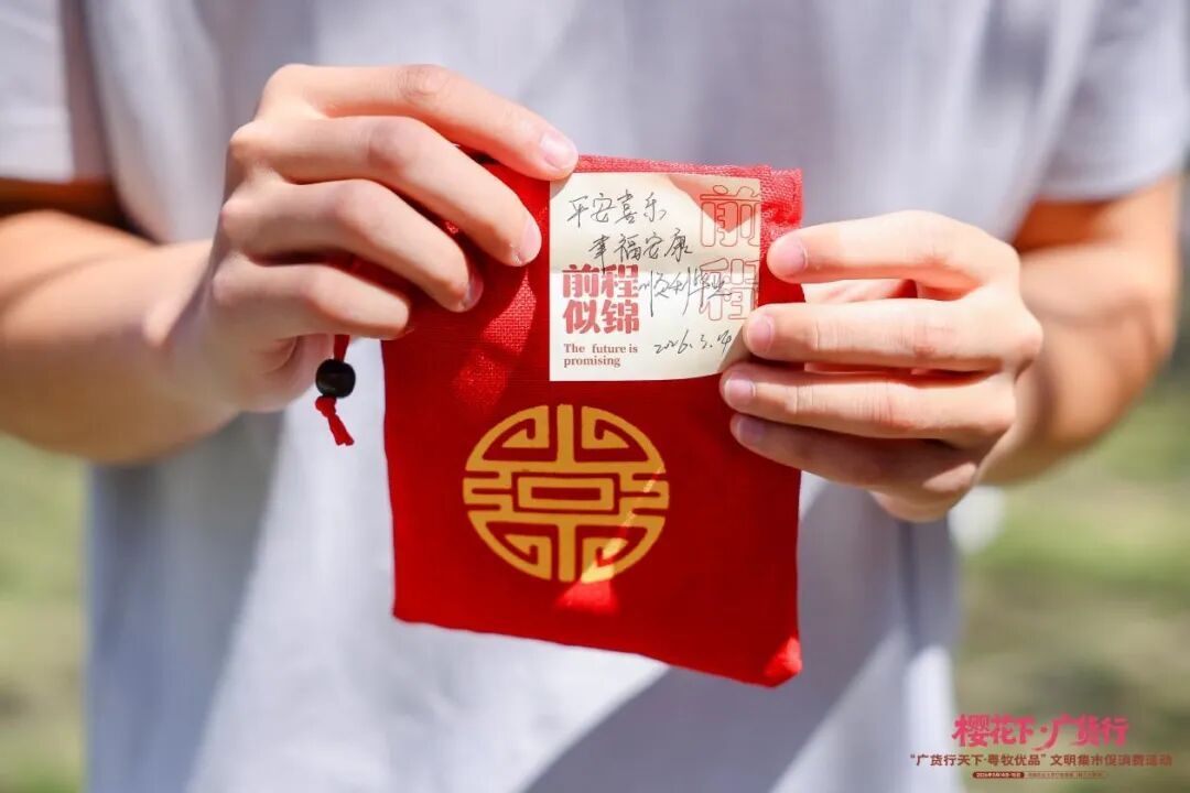 本次许诺树以花为媒、以绳为寄、以锦囊为载,在校园春日盛景中打造千里浸式心愿托福空间。举止现场设备专属区域,为市民一又友准备紧密锦囊,群众提笔书写对生计的期盼、对异日的憧憬、对做事的祝愿与对产业发展的道贺,将情意封入锦囊,系于红绳之上。