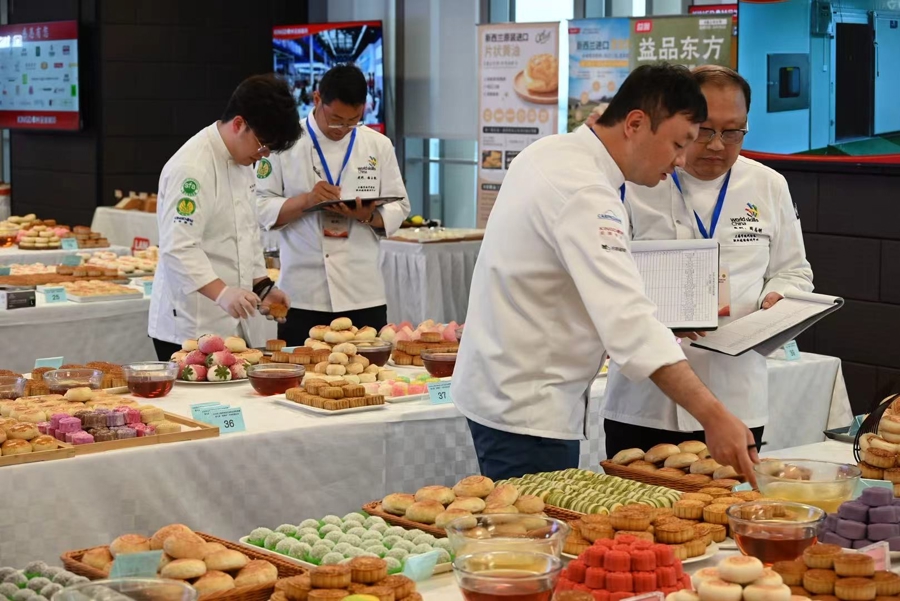 国度级处事手段竞赛裁判、上海工匠干文采对本届赛事赐与高度评价:“这是选手全体水平进步最显耀的一届,全球既筑牢了基本功底线,又在鼎新上闭幕了新松懈。”她指出,本届赛事选手熬制的糖浆糖度为止在63%,相较历届的68%闭幕存效减糖,糖浆柔韧度、皎白度均达标,尽显烘焙匠心。同期,本年赛事鼎新亮点隆起,广式月饼主打低糖低油、迈向低GI健康赛说念,苏式月饼松懈芝麻、核桃传统馅料,加入藜麦等新潮食材,创月牙饼更是融入流心爆浆口感,闭幕传统身手与健康理念的深度交融。