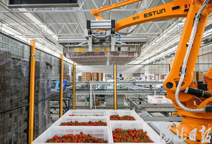 3月10日,智能分拣机械臂在坐褥线上功课。