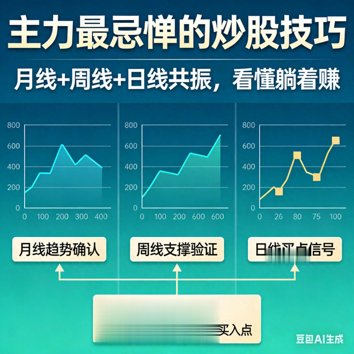 简直能穿越牛熊、褪色主力陷坑、买在主升浪开首的,从来不是某一根均线、某一个办法,而是多周期共振。我在阛阓里摸爬滚打十几年,试过渊博战法,终末简直留住来、永远安适盈利的,只须一套:月线定标的、周线找趋势、日线找买点。