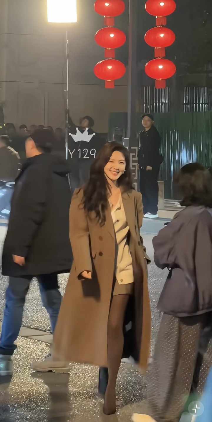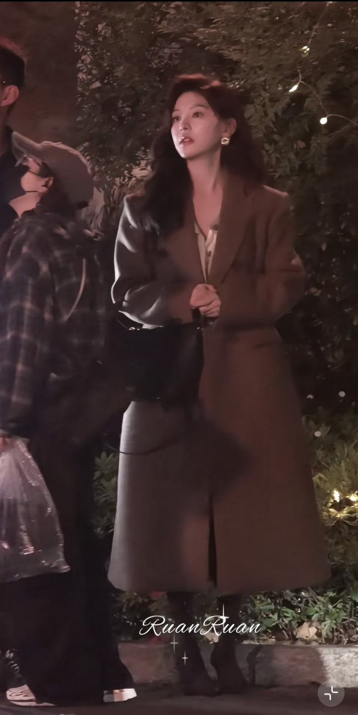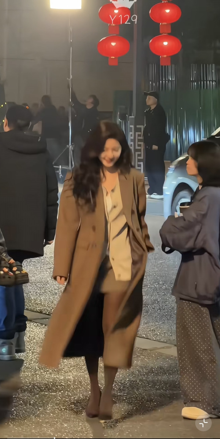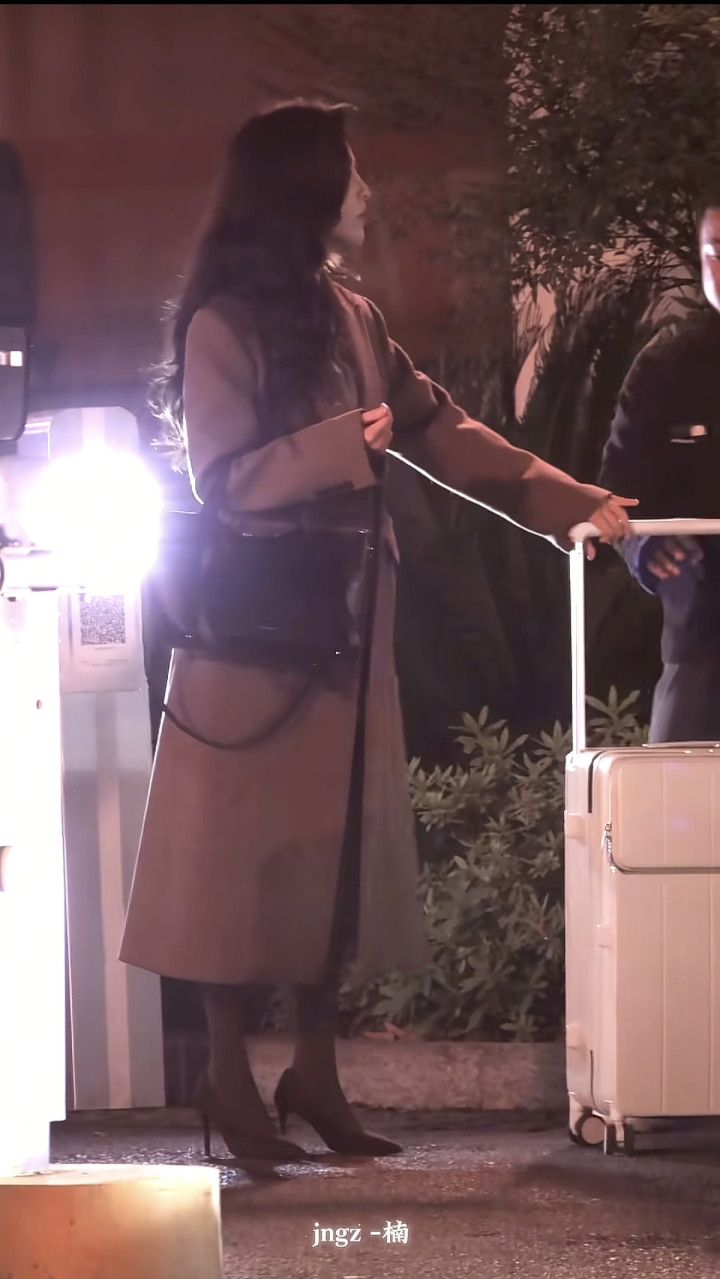 亚博体彩 好细的脚踝! 章若楠拍戏路透, 身穿大衣脚踩细高跟